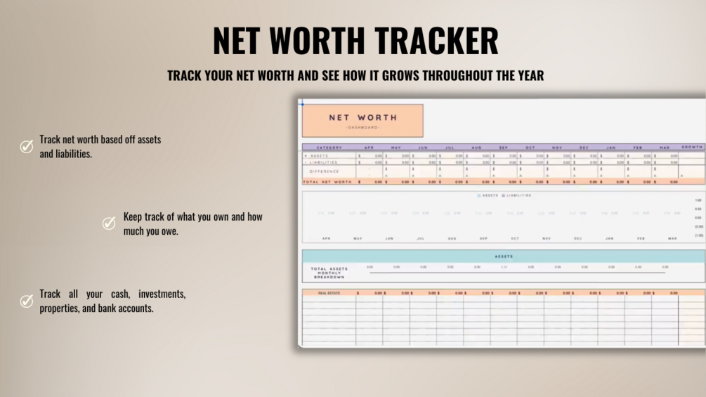 ➤ Net Worth Dashboard: Track the growth of your net worth over time.